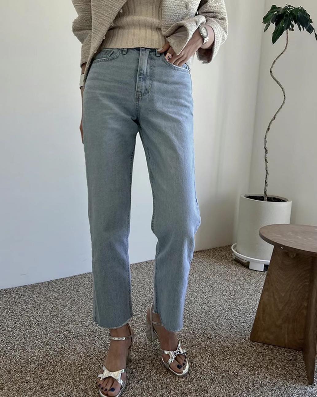 淺藍不修邊牛仔褲